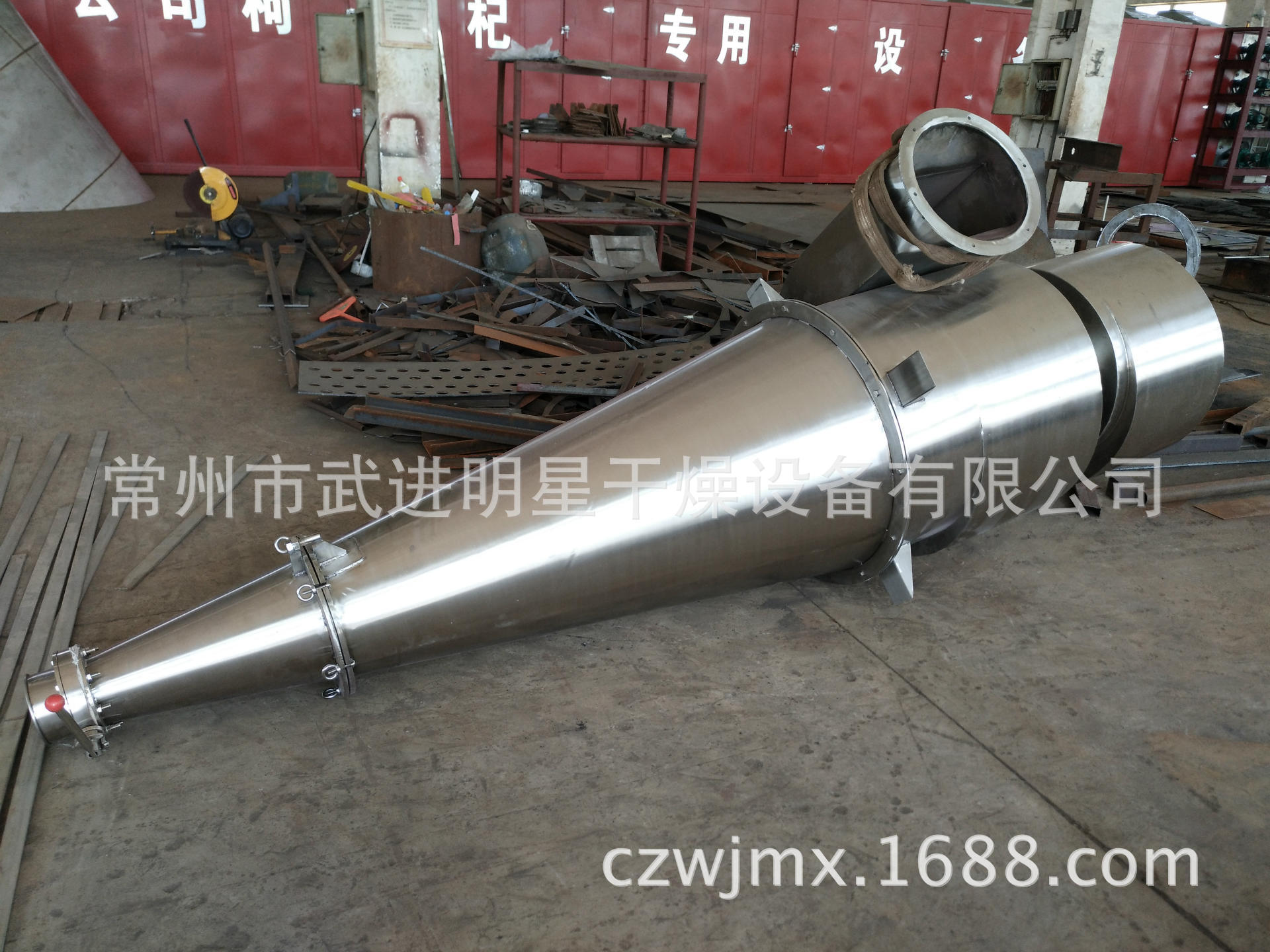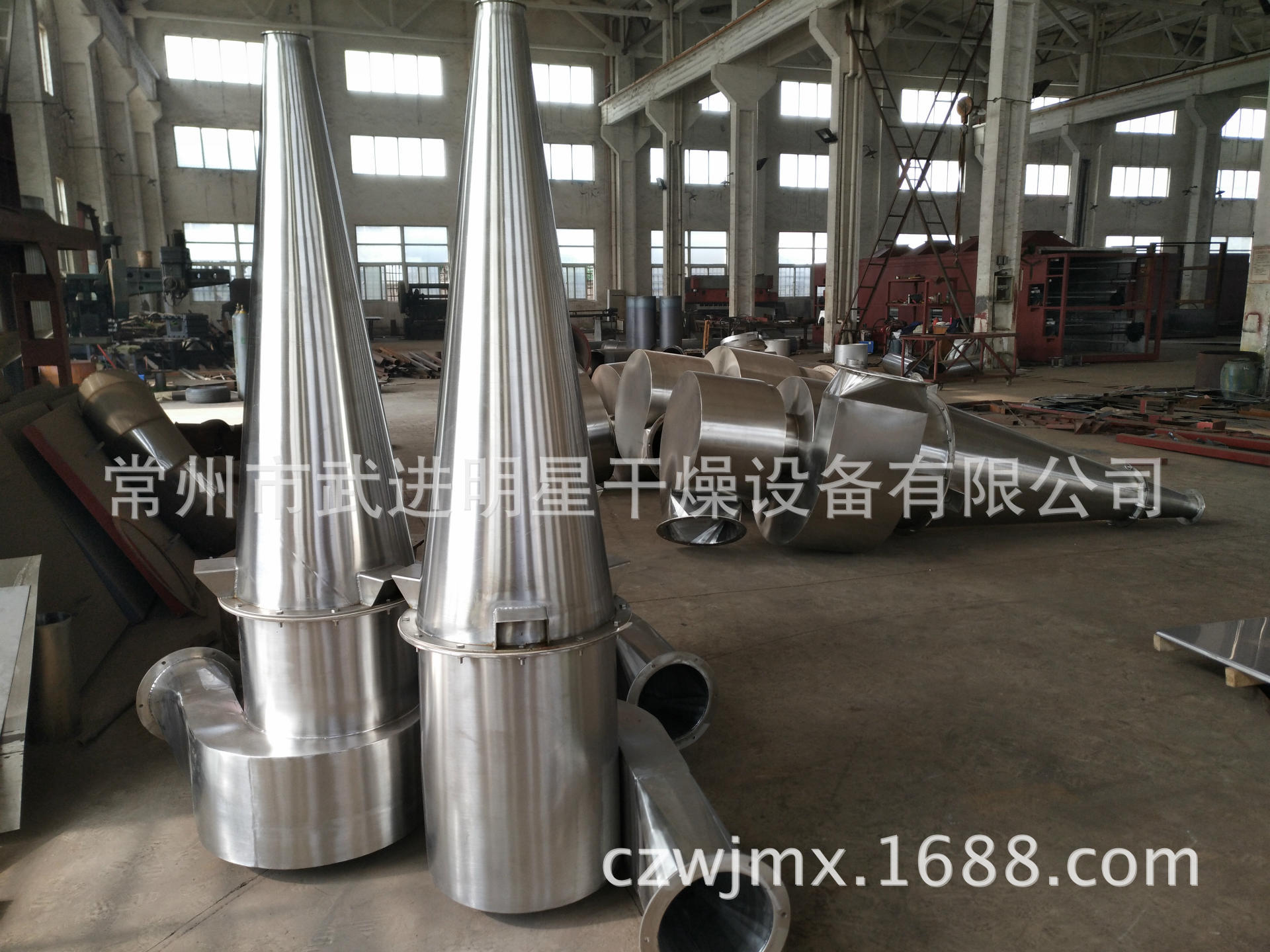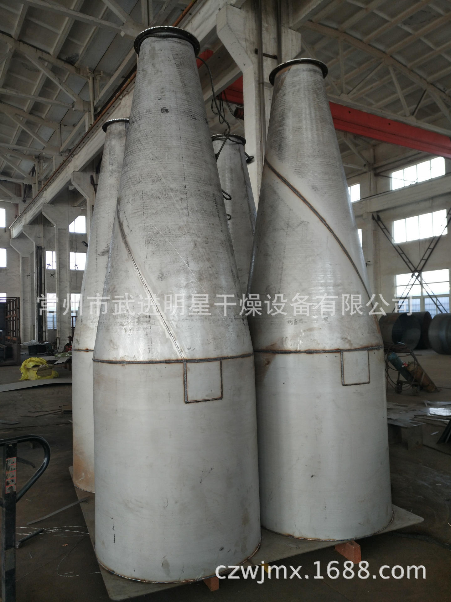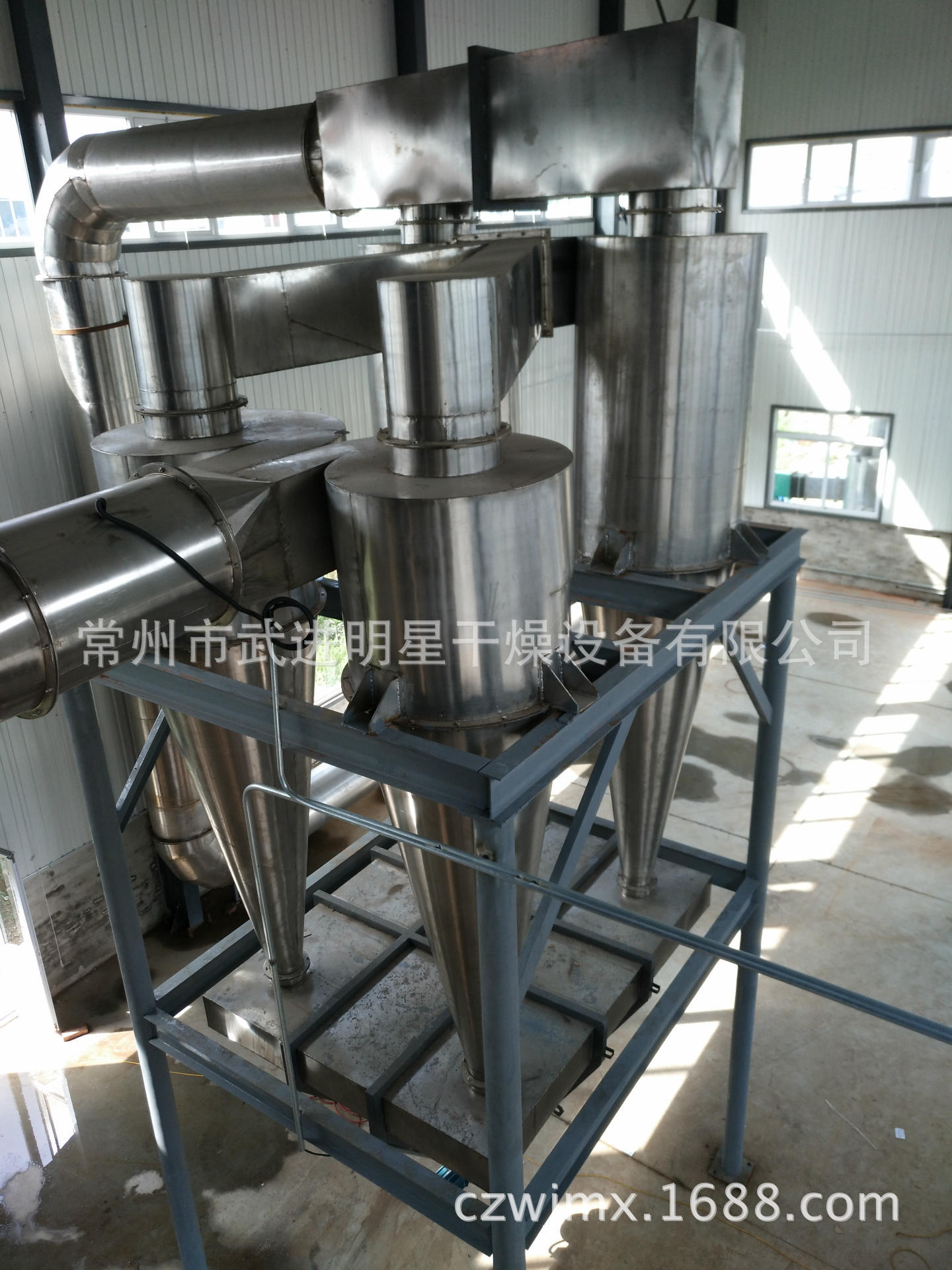圖為中國科學院北京應用化學研究所訂購的SXG-4型閃蒸干燥設備配用的CLK高效擴散式旋風除塵器(用于收集超細膨潤土材料,含水率<1%)
