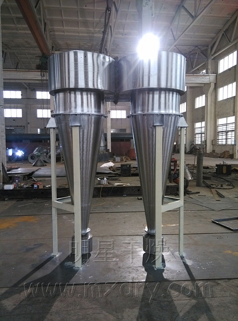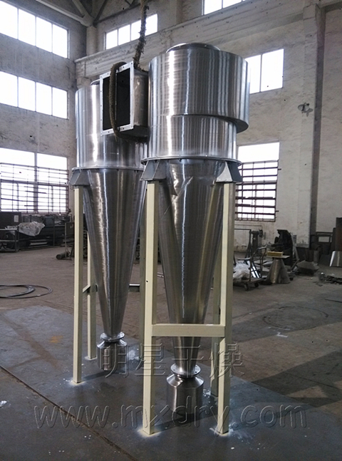 旋風分離器,是用于氣固體系或者液固體系的分離的一種設備。工作原理為靠氣流切向引入造成的旋轉運動,使具有較大慣性離心力的固體顆?;蛞旱嗡ο蛲獗诿娣珠_。旋風分離器的主要特點是結構簡單、操作彈性大、效率較高、管理維修方便,價格低廉,用于捕集直徑5~10μm以上的粉塵,廣泛應用于制藥工業(yè)中,特別適合粉塵顆粒較粗,含塵濃度較大,高溫、高壓條件下,也常作為流化床反應器的內分離裝置,或作為預分離器使用,是工業(yè)上應用很廣的一種分離設備。