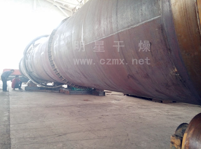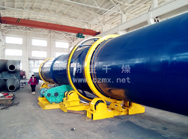 回轉(zhuǎn)式烘干機(jī)主要由回轉(zhuǎn)體、擋料板、傳動裝置、支承裝置等部件組成。其工作原理:利用擺布合理,角度交替變更均布于筒體內(nèi)的揚(yáng)料板,把含水物料拋灑在旋轉(zhuǎn)的筒體內(nèi),經(jīng)熱氣流把水份從物料中分泌出來,變成水蒸氣排放于大氣中而進(jìn)行干燥。
