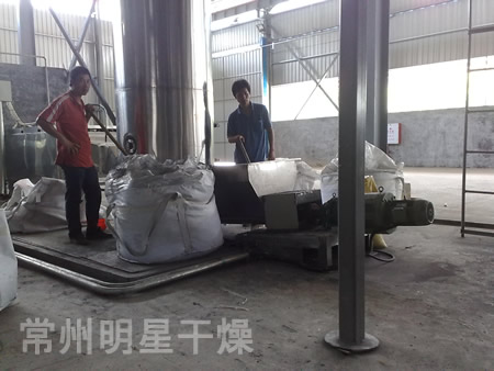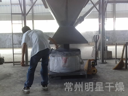 由我公司承攬制作的萬(wàn)噸級(jí)大型閃蒸干燥,近日于福建某工廠成功試車投產(chǎn)。該機(jī)型采用電加熱組為干燥熱源,熱源清潔,溫度比例可調(diào),并且可實(shí)現(xiàn)溫度自動(dòng)控制功能。整體設(shè)備占地面積小,設(shè)備投入低,產(chǎn)能高,能耗也較低,具干燥收塵包裝于一體。在硅材料市場(chǎng),以往工藝是用烘箱干燥,由于該物料堆比重極大(1.3t/方),加料卸料工序多,工人勞動(dòng)強(qiáng)度極大。而干燥完后產(chǎn)品粉塵量大,不溶性粉塵對(duì)工人身體健康危害又極大。