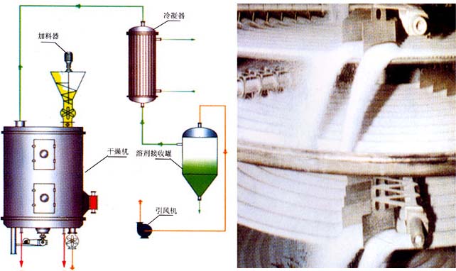 | 濕物料自加料器連續(xù)地加到干燥器上部第一層干燥盤上,帶有耙葉的耙臂作回轉運動使耙葉連續(xù)地翻抄物料。物料沿指數(shù)螺旋線渡過干燥盤表面,在小干燥盤上的物料被移送到外緣,并在外緣落到下方的大干燥盤外緣,在大干燥塔上物料向里移動并從中間落料口落入下一層小干燥盤中。大小干燥盤上下交替排列,物料得以連續(xù)地流過整個干燥器。中空的干燥盤內通入加熱介質,加熱介質形式有飽和蒸汽、熱水和導熱油,加熱介質由干燥盤的一端進入,從另一端導出。已干物料從最后一層干燥盤落到殼體的底層,最后被耙葉移送到出料口排出。濕份從物料中逸出。由設在頂蓋上的排濕口排出,真空型盤式干燥器的濕氣由設在頂蓋上的真空泵抽出。從底層排出的干物料可直接包裝。通過配加翅片加熱器、溶劑回收冷凝器、袋式除塵器、干料返混木結構、引風機等輔機,可提高其干燥的生產能力,干燥膏糊狀和熱敏性物料,可方便地回收溶劑,并能進行熱解和反應操作。 (一)調控容易、適用性強 通過調整料層厚度、主軸轉速、耙臂數(shù)量、耙葉型蕘尺寸可使干燥過程達到最佳。 每層干燥盤皆可單獨通入熱介質或冷介質,對物料進行加熱或冷卻,物料溫度控制準確、容易。 物料的停留時間可以精確調整。 物料流向單一、無返混現(xiàn)象,干燥均勻,質量穩(wěn)定,不需要混合。 (二)操作簡單、容易 干燥器的開車、停車操作非常簡單。 停止進料后,傳送物料垢耙葉能很快地排空干燥器內的物料。 通過特殊性的大規(guī)格檢視門的視鏡,可以對設備內進行很仔細的清洗和觀察。 (三)能耗低 料層很薄,主軸轉速低,物料供關這系統(tǒng)需要的功率小,電耗少。 以傳導熱進行干燥,熱效率高,能量消耗低。 (四)操作環(huán)境好,可回收溶劑,粉塵排放符合要求 常壓型:由于設備內氣流速度低,而且設備內濕度頒布上高下低,粉塵很難浮到設備頂部,所以頂部排溫口排出的尾氣的尾氣中幾乎不含有粉塵。 密閉型:配備黨溶劑回收裝置,可方便地回收載濕氣體中的有機溶劑。溶劑回收裝置簡單,回收率謝,對于易燃、易爆、有毒和易氧化的物料,可用氮氣作為載濕氣體進行半路循環(huán),使之安全操作。特別適用于易燃、易爆、有毒物料的干燥。 (五)安裝方便、占地面積小 干燥器整體出廠,整體運輸,只需吊裝就位,安裝定位非常容易。 由于干燥盤層立式布置,立式安裝,既使干燥面積很大,占地面積也很小。 |